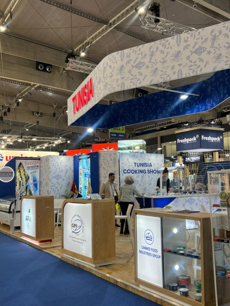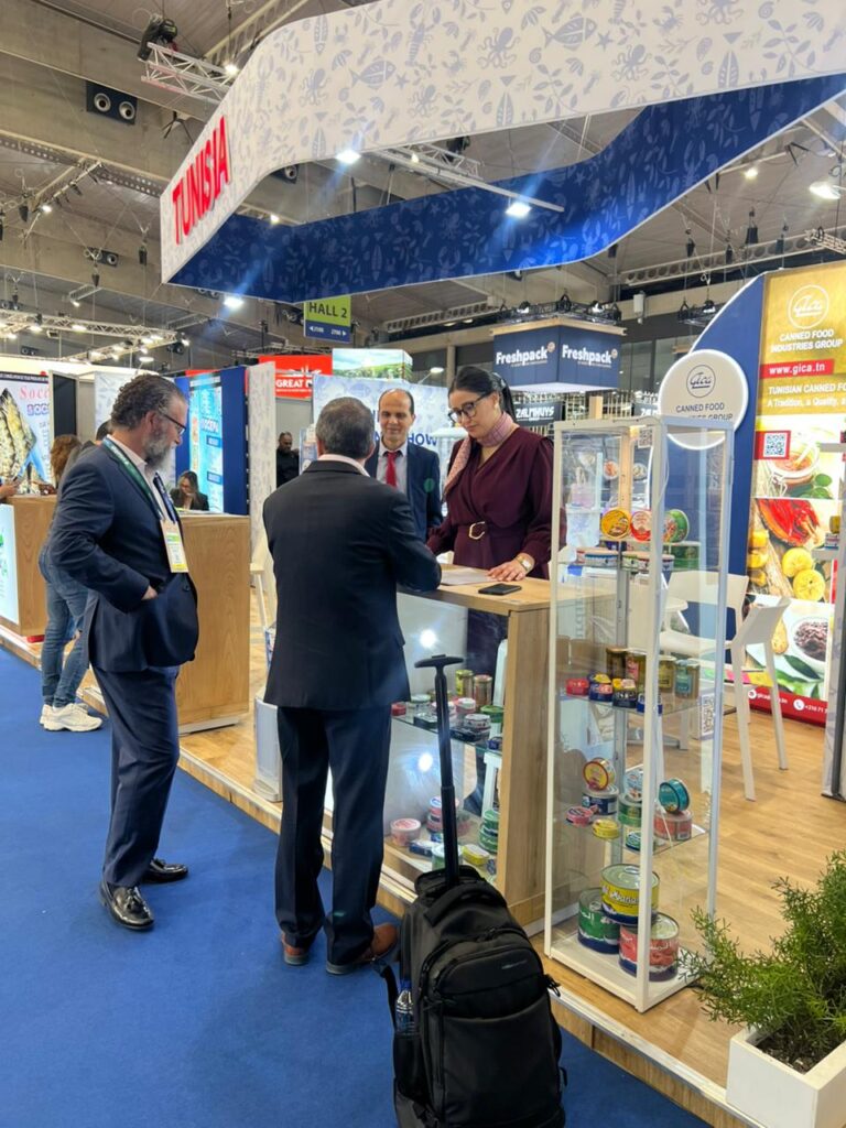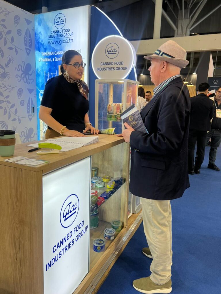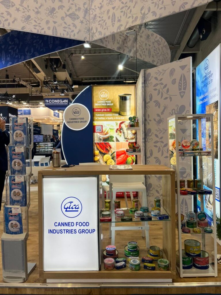 Le pavillon tunisien, d’une superficie de 216 m², a accueilli la participation du GICA aux côtés de plusieurs exposants représentant la profession. Parmi une dizaine d’exposants tunisiens présents, le GICA était le seul à représenter la gamme des conserves de produits de la mer, ce qui en fait un acteur clé dans la valorisation de ce segment. Le pavillon a suscité un intérêt notable auprès des visiteurs professionnels, offrant l’opportunité de nouer des contacts avec des importateurs, distributeurs et partenaires potentiels issus de différents marchés. Les échanges engagés durant le salon ouvrent ainsi des perspectives prometteuses pour le développement des exportations et la diversification des débouchés dans un climat marqué par un développement durable.